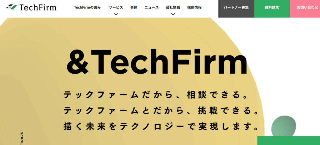 テックファーム株式会社は、要件定義から運用まで一気通貫でサポートできる総合力が魅力の開発会社です。