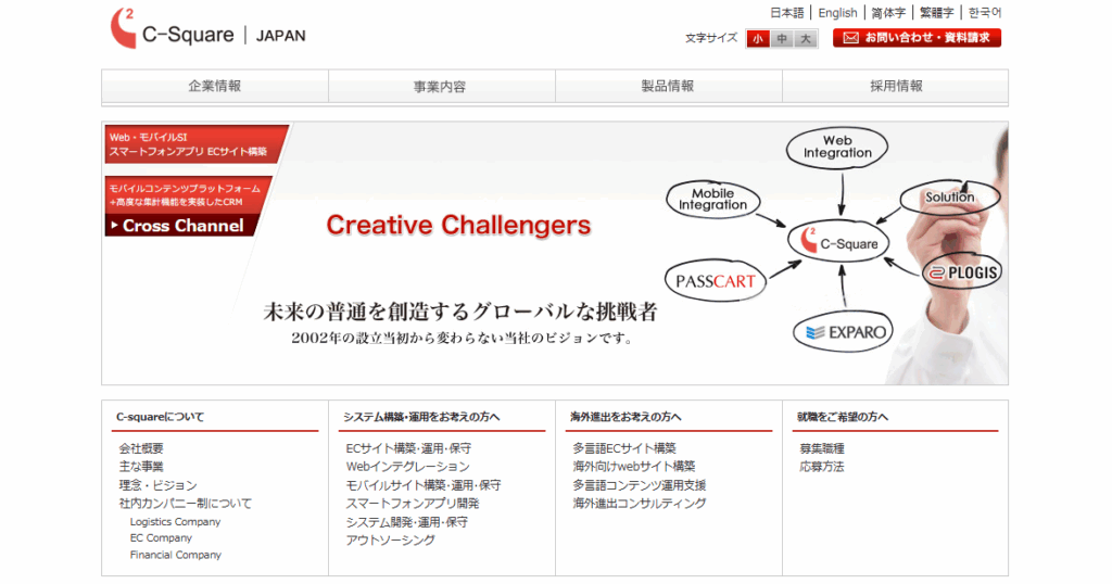 また、多言語対応のモバイルCRM(顧客関係管理)やCMS(コンテンツ管理システム)の自社プロダクトも展開しており、海外展開を視野に入れた企業にも対応可能です。