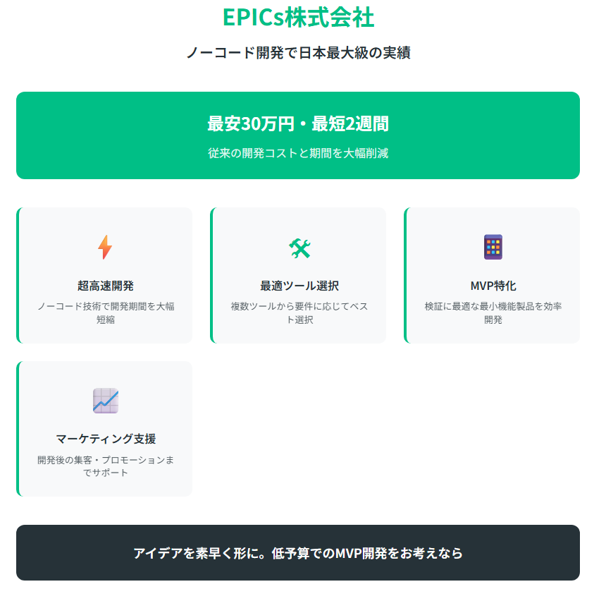 EPICs株式会社は、ノーコード開発において日本最大級の実績を持つ開発会社です。