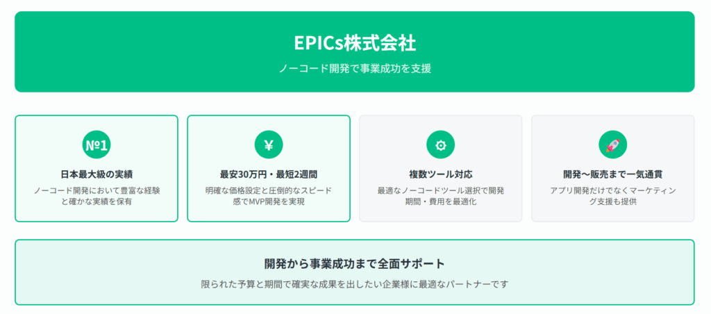 EPICs株式会社は、ノーコード開発において日本最大級の実績を持つ開発会社です。