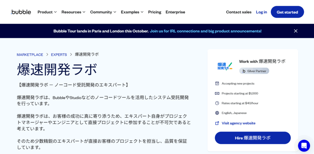 Bubble/Studio等のノーコードツールを活用した受託開発を手がけ、Bubble Expertにも掲載されている実績があります。超短期での実装を主眼とし、スピード重視のプロジェクトに特化した開発体制を構築。