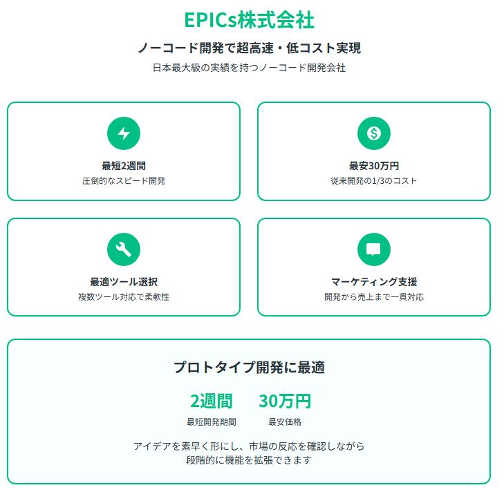 限られた予算で素早くアイデアを形にし、市場の反応を見ながら段階的に機能を拡張していくアプローチをお考えの方には、特におすすめのソリューションとなっています。