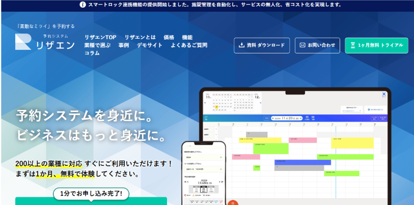 リザエンは、医療機関や公共施設など、BtoB案件での豊富な実績を持つ予約システムです。月額10,000円で月間500件まで予約を処理できるコストパフォーマンスの高さと、大量の予約を安定的に処理できる技術力が評価されています。