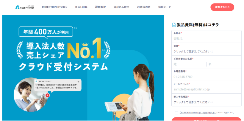 RECEPTIONISTは、従来の予約システムとは一線を画す、来客受付と日程調整を統合したオフィス向けDXソリューションです。