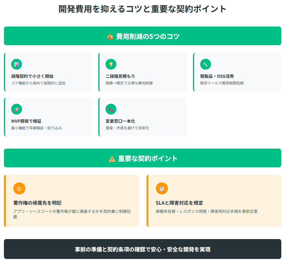アプリ開発を成功させるために知っておきたい、コスト削減の方法と契約時の注意点をご紹介します。