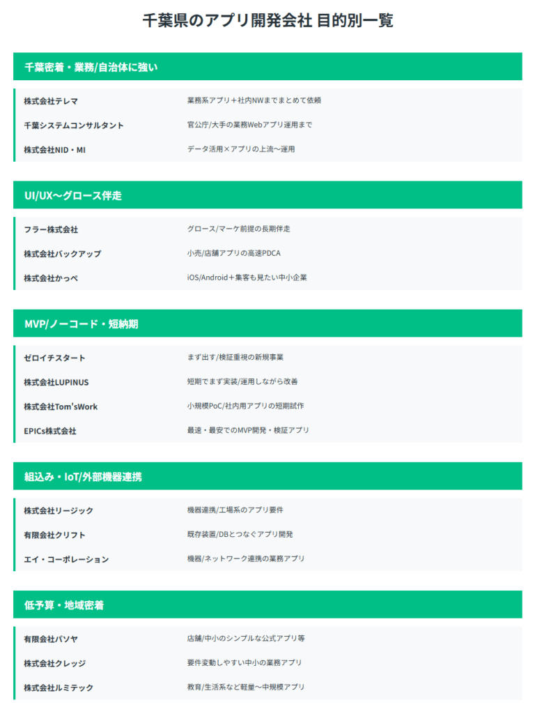 千葉県でアプリ開発を検討している企業や個人事業主の皆様に向けて、目的やニーズに応じた開発会社をご紹介します。