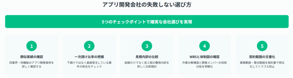 岐阜県内でアプリ開発を外注する際、会社選びで失敗しないための重要なポイントをご紹介します。適切な判断基準を持つことで、プロジェクトの成功確率を大幅に高めることが可能です。