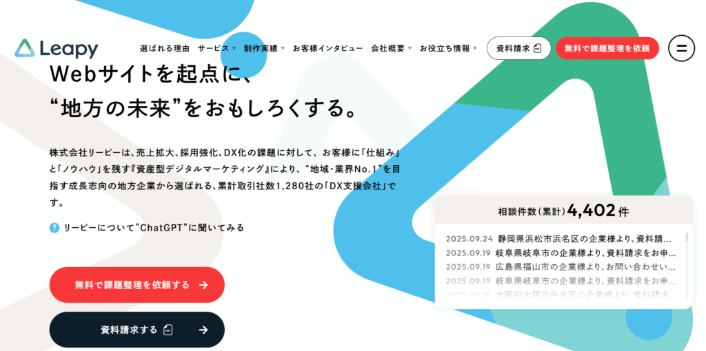 株式会社リーピーは、岐阜市を拠点とするマーケティングとシステム開発を組み合わせた総合型の会社です。