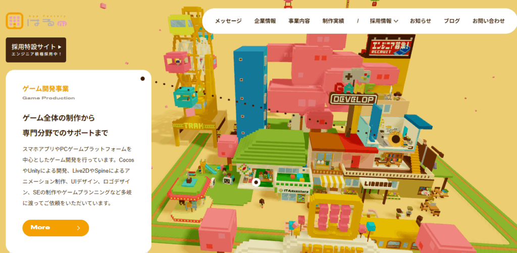 アプリファクトリーはるni株式会社は、鹿児島市を拠点としながら、Unity(ゲーム開発エンジン)を活用したゲームアプリ開発や、高い表現力が求められるBtoCアプリケーション開発に特化した技術力の高い開発会社です。