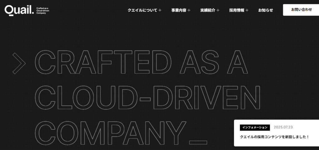 株式会社クエイルは、AWS(Amazon Web Services)のアドバンストレベルの認定を取得したクラウドインフラの専門知識とアプリケーション開発技術を併せ持つ、技術力の高い開発会社です。
