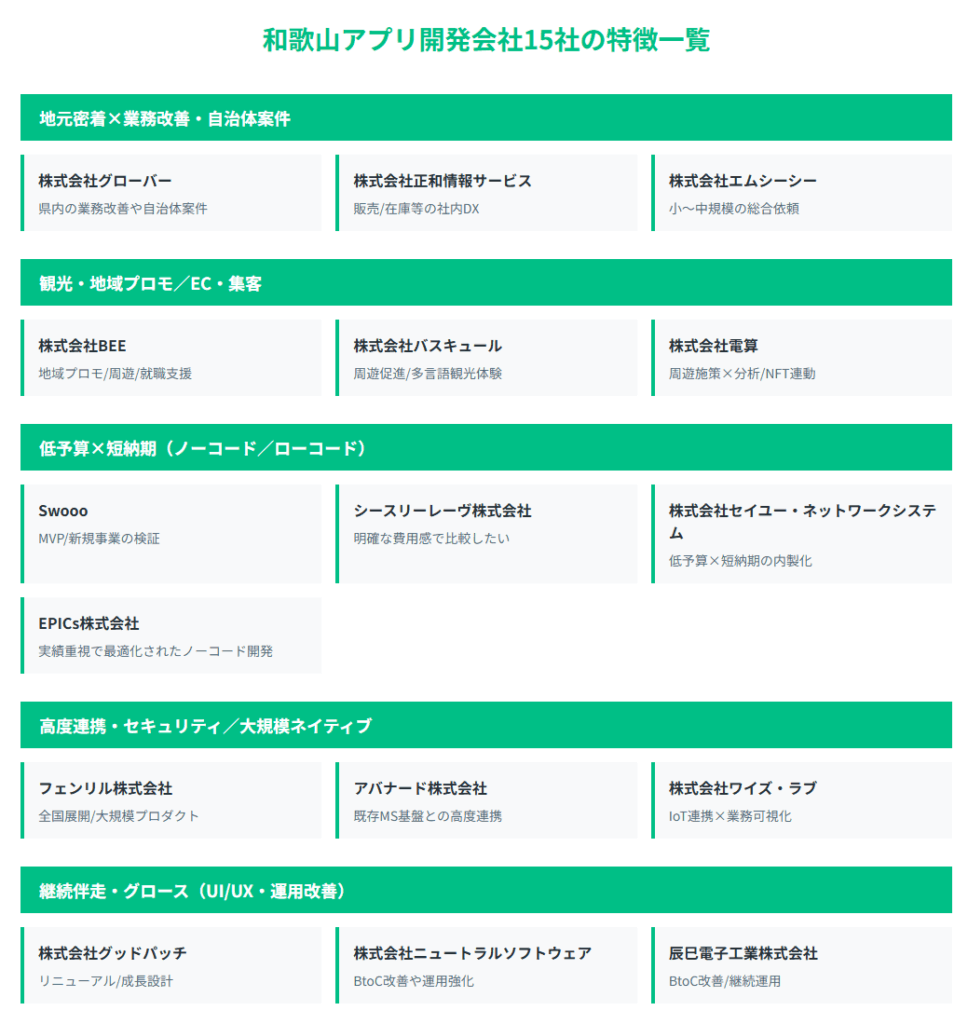 本記事では、和歌山のアプリ開発会社15社を5つの軸で分類し、それぞれの特徴や強み、適用ケースを詳しく紹介します。