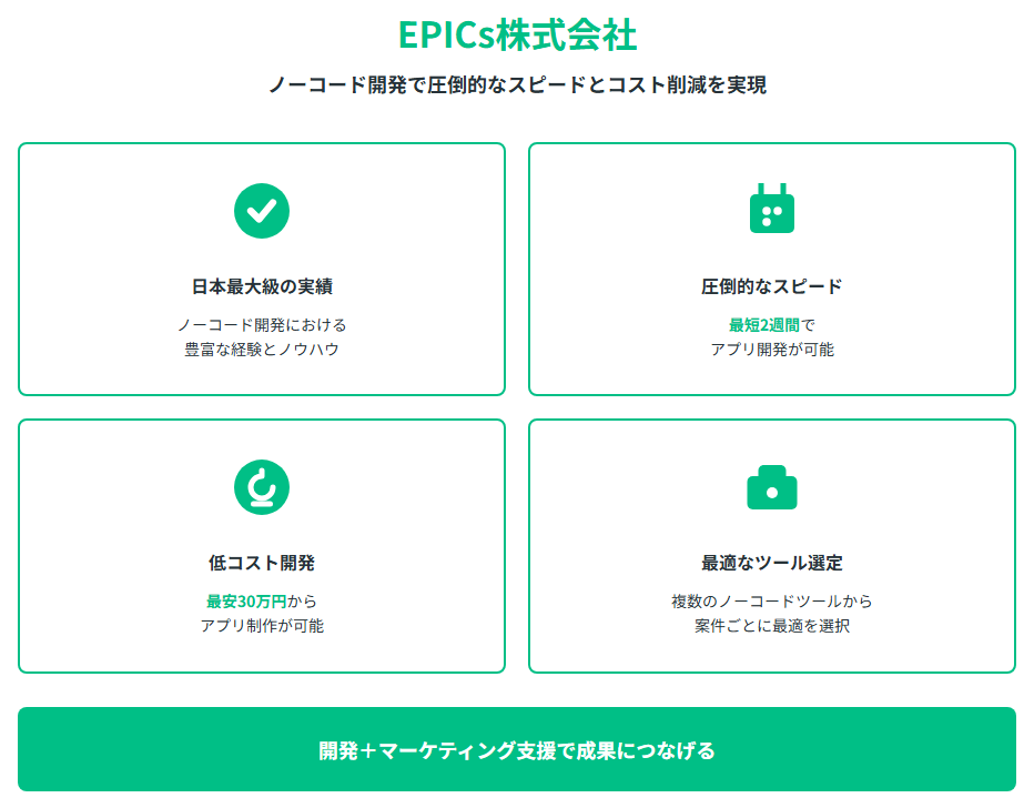EPICs株式会社は、ノーコード開発において日本最大級の実績を持つ開発会社です。