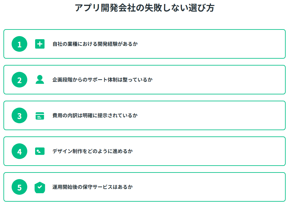 東大阪市でアプリ開発会社を選ぶ際、どのようなポイントに注目すれば失敗を避けられるのでしょうか。ここでは、発注前に確認すべき5つの重要なポイントを解説します。