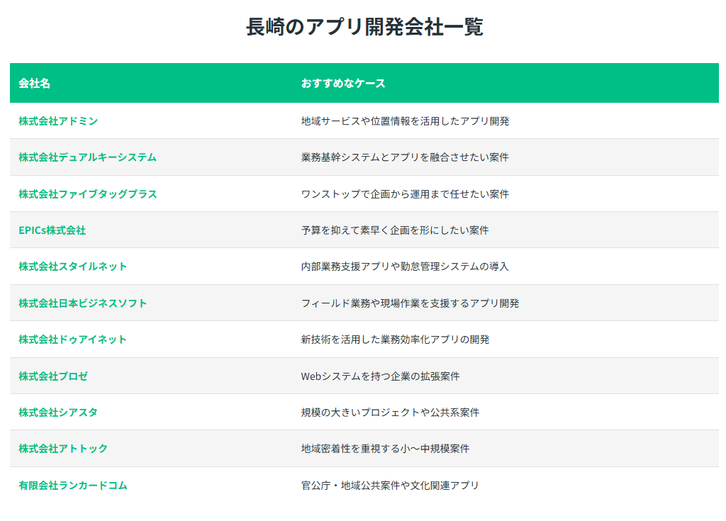 長崎という地域で、包括的なサポートを受けながらアプリ開発を進めたい場合の有力な選択肢です。