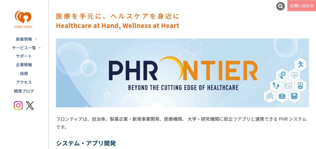 キュアコードは、医療機関や自治体との共同開発に強みを持つ開発会社です。心不全管理アプリ「ハートサイン」や自治体向けの歩数計アプリなど、実際の医療現場や地域での運用を前提とした開発実績が豊富。