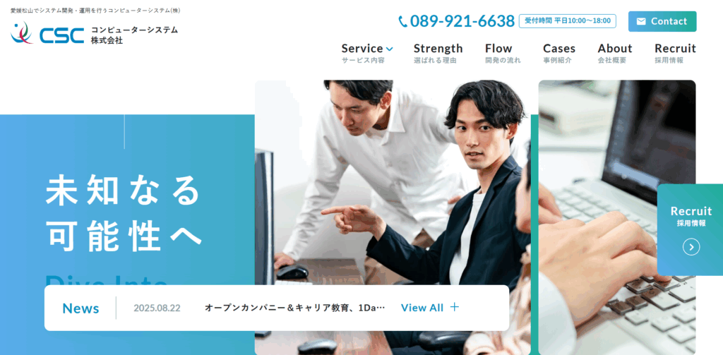 公開されている事例の多さは、同社の実力と経験値の高さを物語っています。                             松山を中心にしたニアショア開発(発注元に近い地域での開発)により、コミュニケーションの円滑さとコスト最適化を両立。                             定期的な対面でのミーティングが可能なため、要件のすり合わせや仕様変更への柔軟な対応が期待できます。