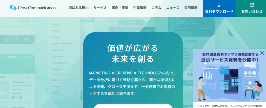 クロス・コミュニケーションは、戦略的な提案力とUX設計の両方に強みを持つ開発会社です。