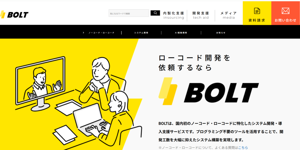 BOLTは、Webサービスやアプリの開発に特化したノーコード開発会社です。                                会員制サービスや予約システム、ECサイトなど、顧客向けサービスの構築に多くの実績を持っています。