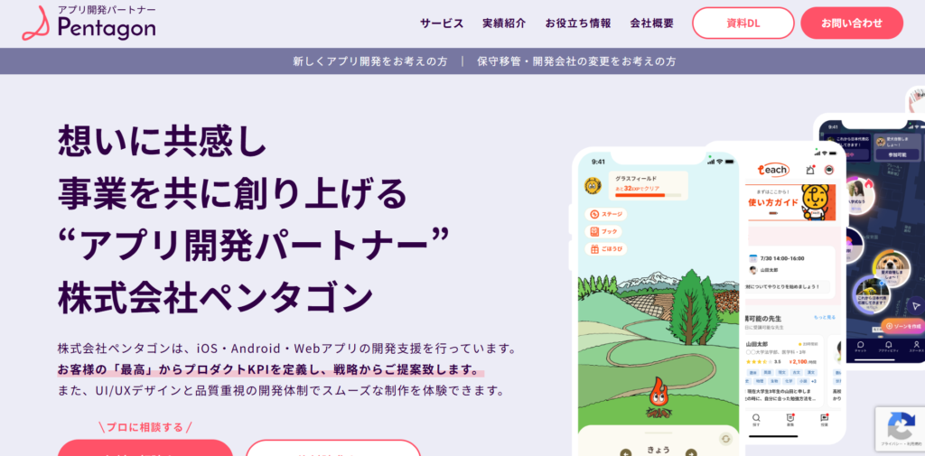 株式会社Pentagonは、UI/UXデザインを強みとするアプリ開発会社です。留学生マッチングアプリや資材置場の予約マッチングアプリなど、多様なジャンルのマッチングアプリ開発実績を持っているのが特徴。